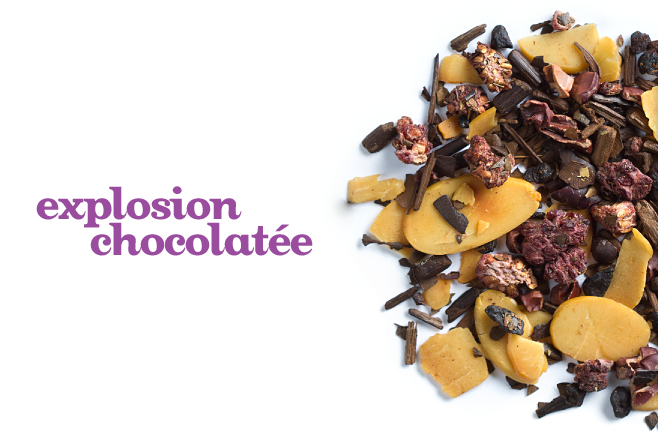 Explosion chocolatée, déjà, juste le nom vous fait envie. Il s’agit ici d’un maté! Le maté c’est comme du thé, mais en mieux, grâce à ses vertues sur notre santé — pour ne nommer que celle qui m’a le plus frappée, le maté est un stimulant du système nerveux central et pourrait être un traitement contre l’obésité — n’est-ce pas merveilleux! Et plutôt que de venir d’Asie, il provient d’Amérique du sud. Bref! Suffit le cours d’histoire naturelle, explosion chocolatée est tout simplement divin. Tellement onctueux, avec un petite pointe de framboises, ah! Si bon.