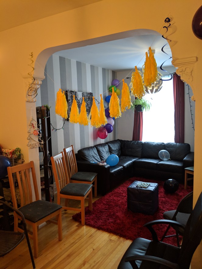 Heureusement, je n’étais pas seule dans l’organisation de l’événement. Ma soeur a aussi demandé à l’une de ses meilleures amies d’embarquer dans le projet. Même si ça me soulageait de ne pas avoir tout le poids de l’organisation sur mes seules épaules, j’étais quand même légèrement mal à l’aise aux premiers abords. Son amie, je l’avais déjà croisée, mais sans plus. Je me sentais comme dans un travail d’équipe en début de session alors qu’on ne connait encore personne dans notre classe. LOL! Ma personnalité introvertie a cogné à ma porte juste pour me rappeler « Coucou, t’es pas super à l’aise dans les nouvelles situations sociales! ». Mais c’est correct, ça fait 29 ans que je vis avec ce trait de personnalité et j’ai plus d’un tour dans mon sac pour passer par dessus. (Genre, le déni. LOL!)