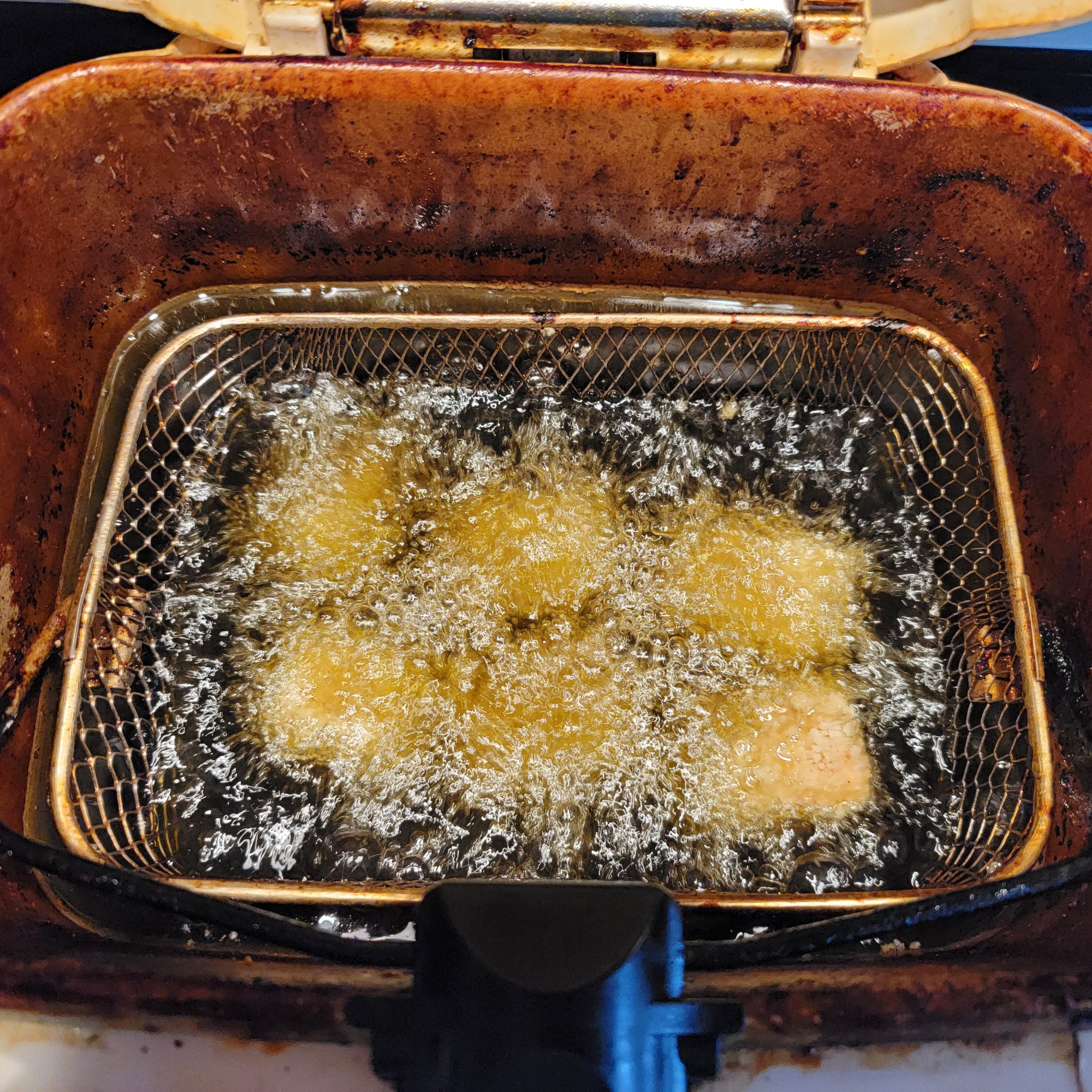 Faire frire à couvercle ouvert quelques minutes en surveillant, jusqu’à colloration dorée. Attention de ne pas trop frire, ça peut fondre et couler dans la friteuse.