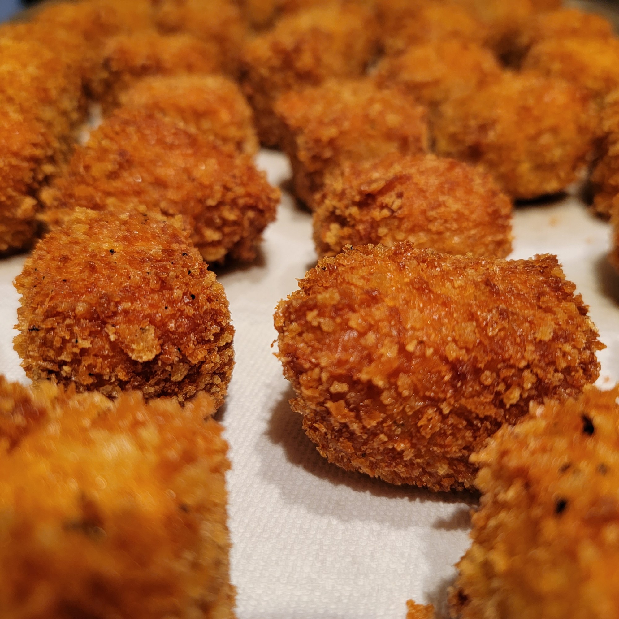 Ces fondues parmesan maison viennent d’une recette de mon papa sur laquelle j’ai toujours trippé. C’est la première fois que je la reproduisais cette année, pour le concours de bouffe au Noël dans ma famille… et grâce à ces fondues, j’ai gagné la catégorie entrées. :D Ça vaut définitivement le détour! Attention, prévoir 2 jours pour faire cette recette à cause du temps de congélation.
