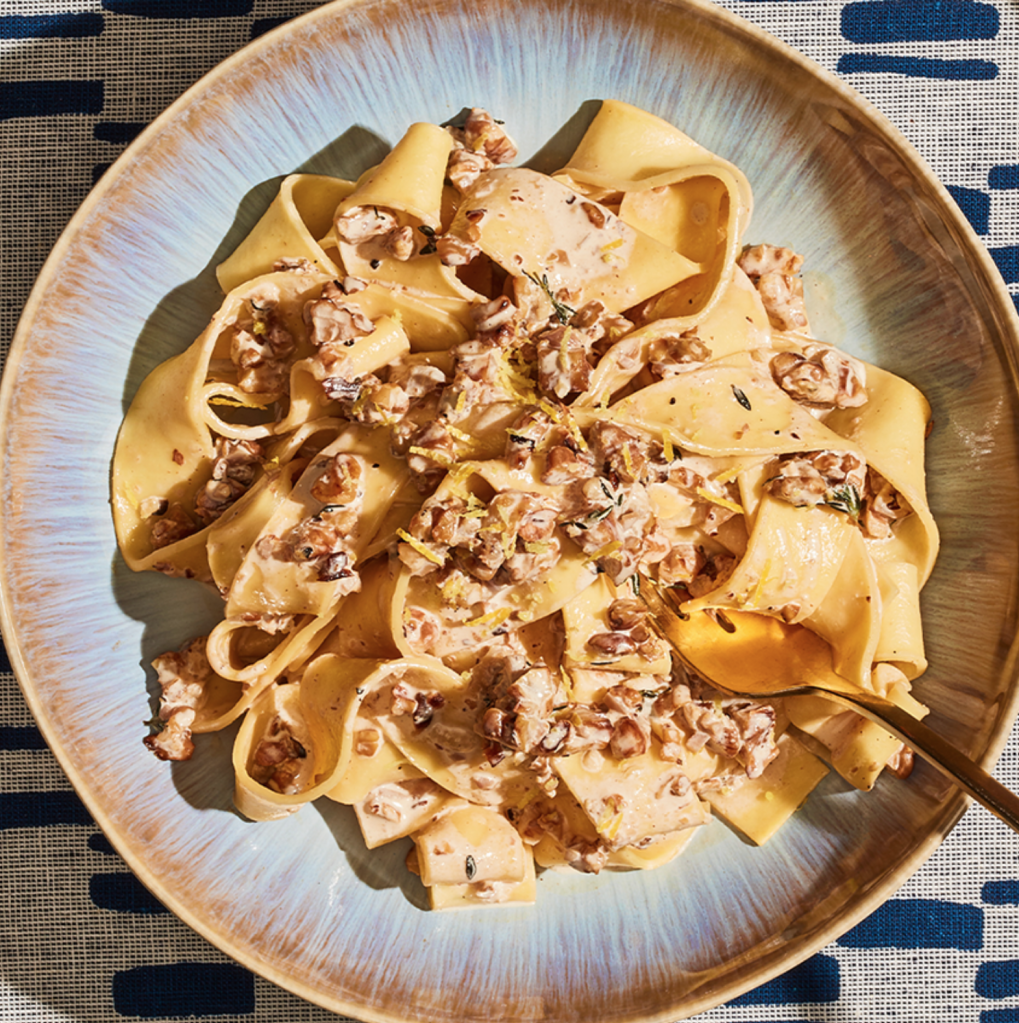La première fois que j’ai goûté ces pâtes, c’était lors d’une fête d’été où le mari de ma soeur avait fait un bar à pâtes avec plusieurs sauces différentes. J’ai tellement aimé ça, je suis repartie avec la recette :)